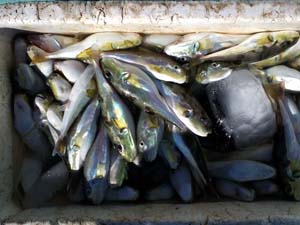 ポンポンポンとフグやエソ、ウツボ、ホウボウ、エイが上がってきました
