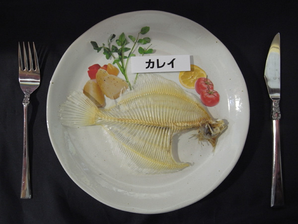 左 (に眼がある) ヒラメに、右 (に眼がある) カレイ