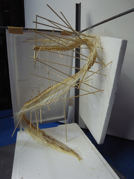 「発砲スチロールに竹串をブスブスさして、まずは骨組みを整えま~す!