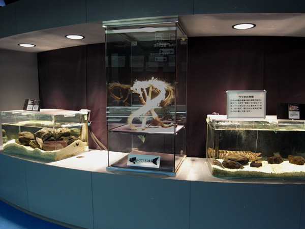 「一目で水槽を泳ぐ本物のウツボと比較が出来るんで~す!」
