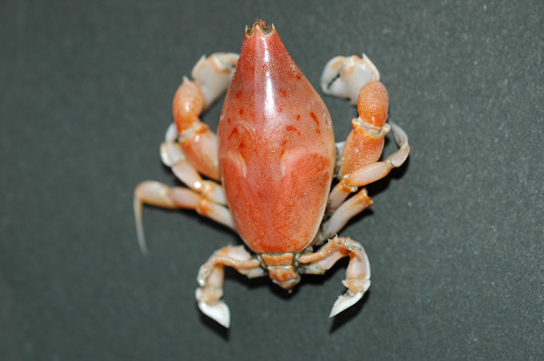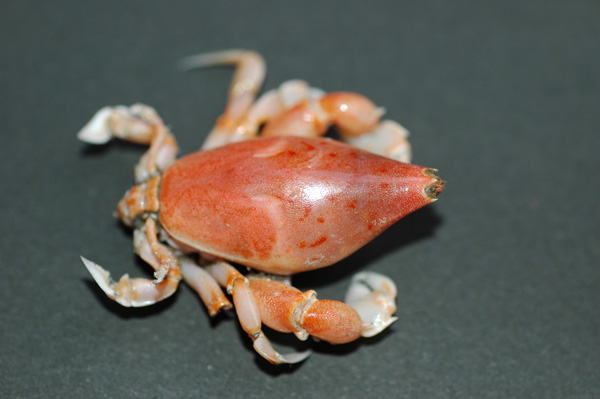 カニにしては変わったフォルム、甲はつやつや、
