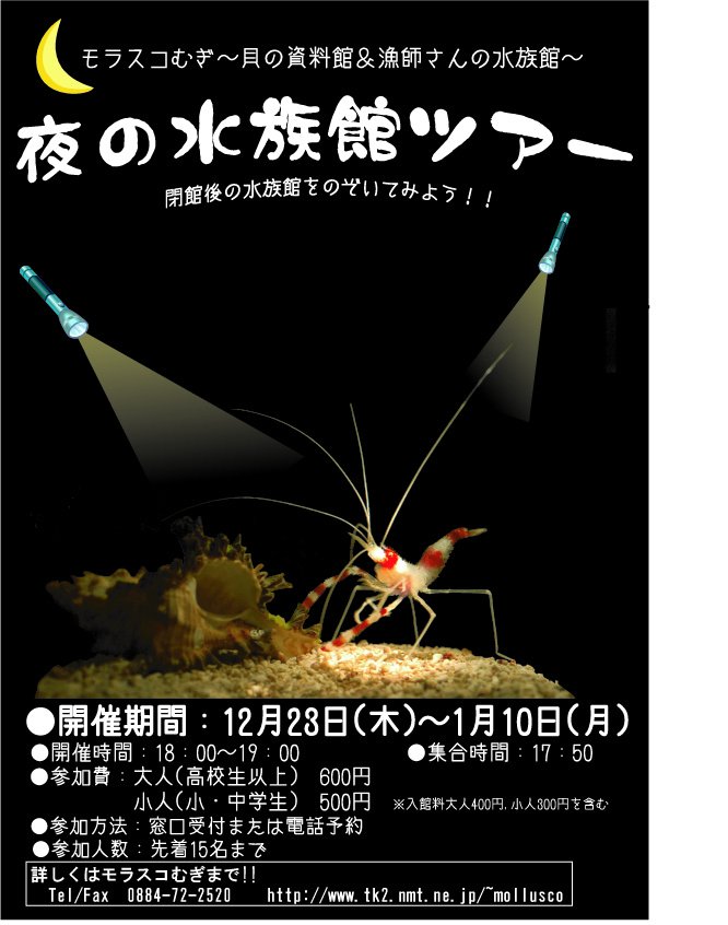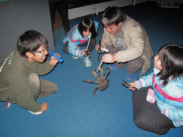 夜行性のエビやカニたちは活発に動き回っている様子を観察できます