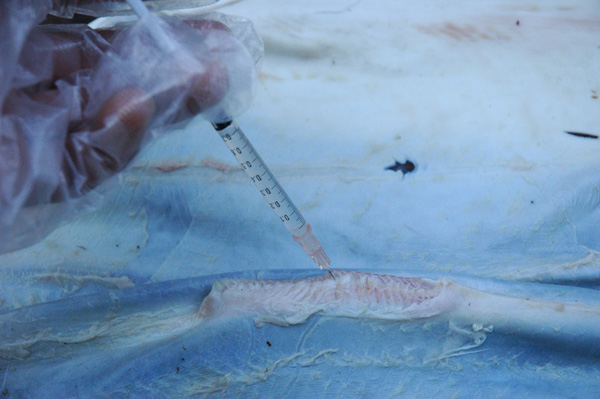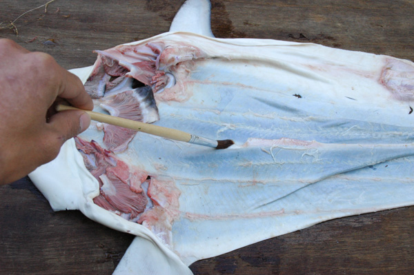 ホルマリンで取れなかった肉と皮を固定していきます!