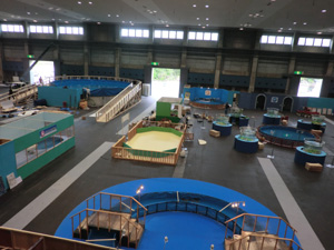 さてさて、今回は現在岡山県にある「コンベックス岡山」で開催されている「青い海の水族園」の設営風景をお届けしたいと思います