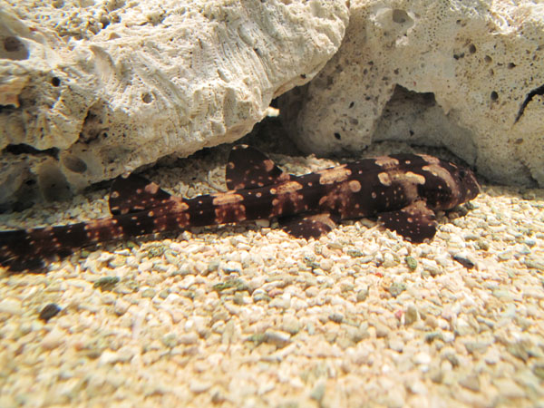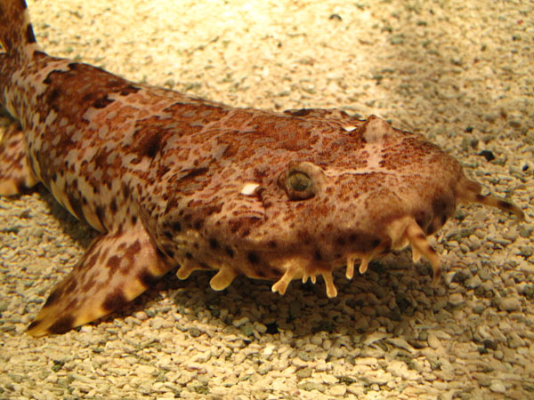 頭が平らで英名カーッペットシャークと呼ばれるオオセの2種類のサメの生体も展示してます。