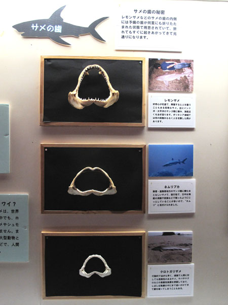 “日本にいるサメ”、“サメのうんちく”、“サメの歯”と大きく3つに分けて展示しています。