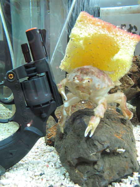 オオカイカムリは敵から身を隠すためにスポンジや海綿を背負って