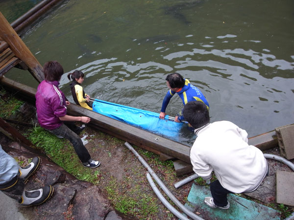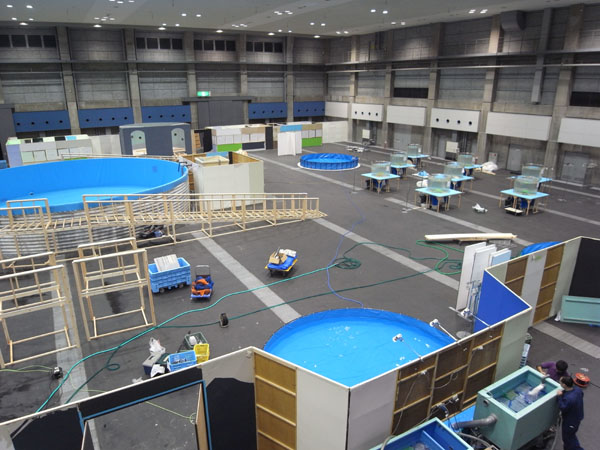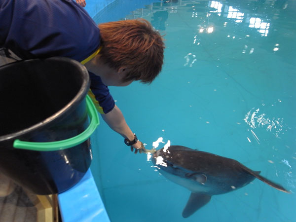 直径10mの円形プールを歩き回っていて、その生き物たちを触れるようになっています!