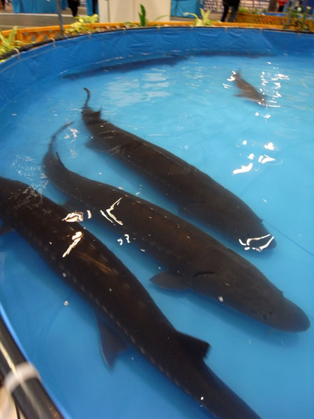 キャビアを取るために人工的に作り出された養殖のチョウザメが