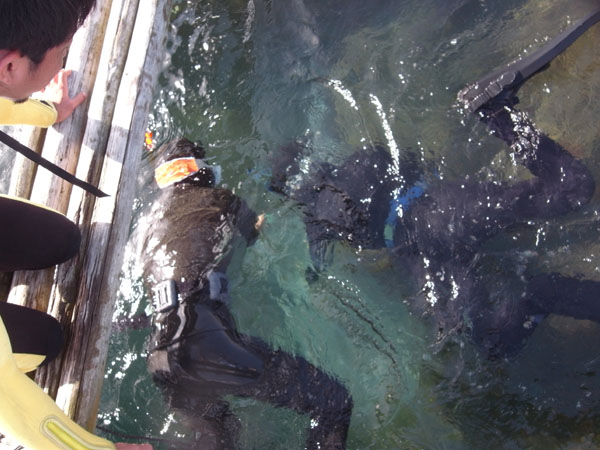 なかには強く掴みすぎて内臓を出してしまうナマコも・・・。