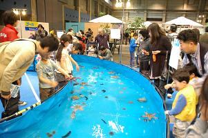 本物のサメにさわれる「サメ肌タッチ」コーナーも!!