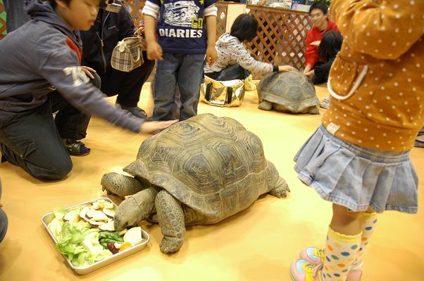 !!!南アフリカの東、アルダブラ諸島に多く生息している“アルダブラゾウガメ”に触れるコーナー!