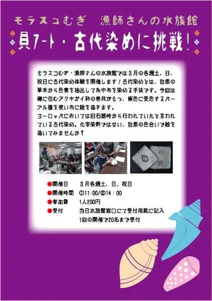 はじめに古代染めについてレクチャーしたあと、実際に貝を割る作業から