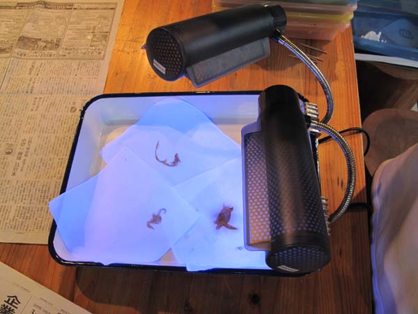 ただ、本日は太陽が出ていなかったので代わりにブラックライトを使いました。