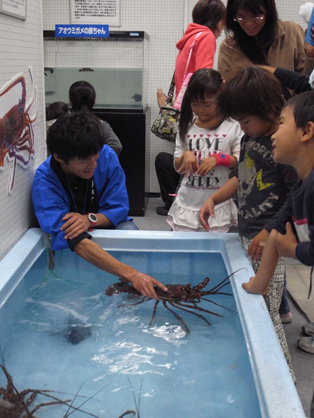 中でも人気はすさみの海の生物タッチングプールとイセエビのタッチングプール!