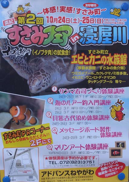 10月24日(土)と25日(日)の2日間、大坂の寝屋川市で開催された「すさみフェアin寝屋川」に