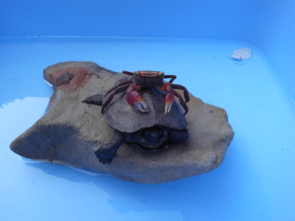 皆さんに甲羅の硬さと重量感をばっちり体感してもらいました!