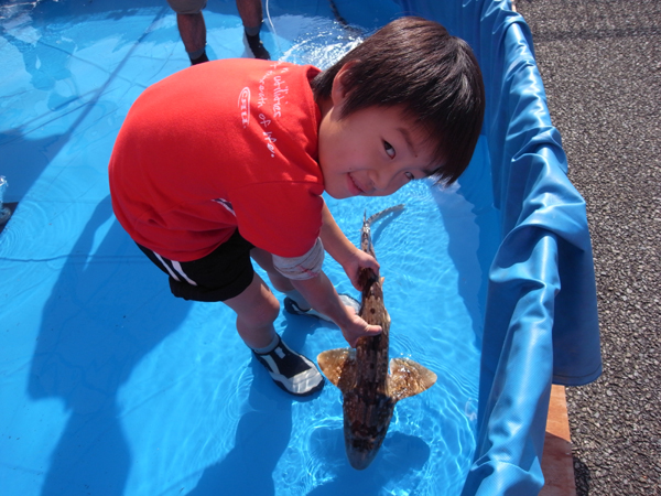 初めて触るサメやエイが自分たちの住むすぐ近くの海から来た事を