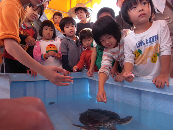 10:00と14:00頃には「教えて!ウミガメ博士!」と題したウミガメの解説・エサやり・タッチも
