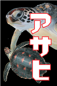 個体C:甲羅の色がこげ茶色で明るい茶色の点模様がある⇒『アサヒ』