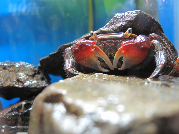 アカテガニは普段は陸上で生活していますが、産卵の時は海に行きます。