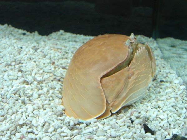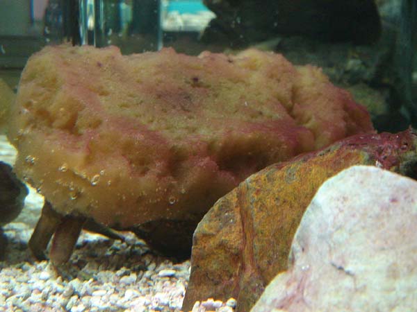 当館にいるカイカムリは、カイメンではなく本物のスポンジを背負っています♪