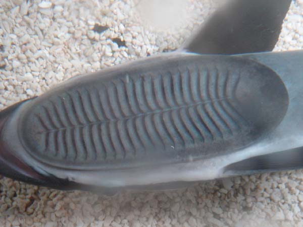 この吸盤を使って大型の生物などに吸着し自分で泳ぐエネルギーを節約しているので、海の中だとあまり見えない小判型の吸盤も、水槽だとバッチリ観察出来ますよ☆