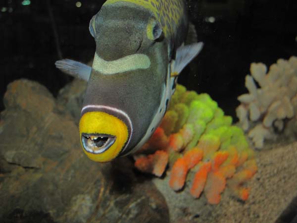 この立派な丈夫な歯を使って、甲殻類やウニなどの殻を割って食べているんです♪