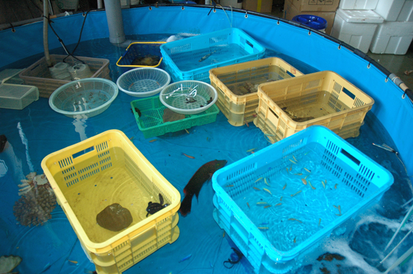 水槽内の環境にもなれ、今では餌のマメアジをバクバク食べています