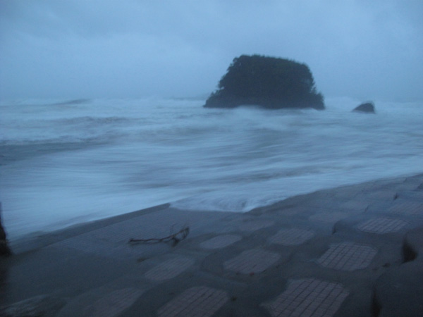 高波は3m近い岩をも楽勝で乗り越えていきます