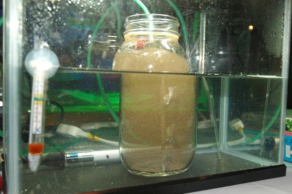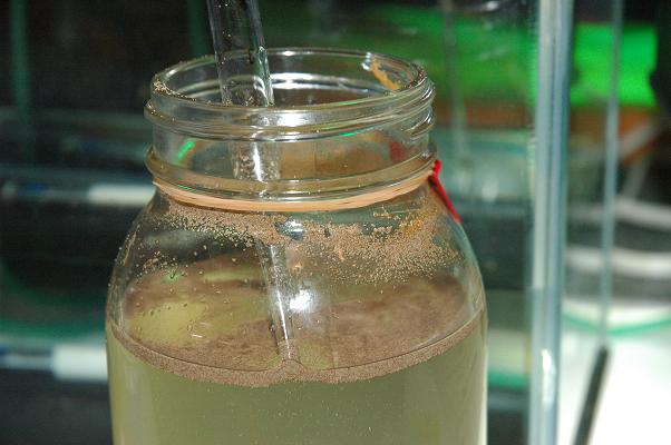 下に溜まっているオレンジ色のものが孵化したブラインシュリンプです。