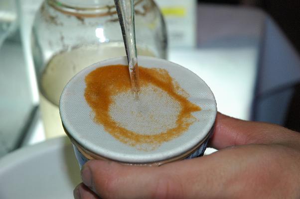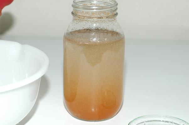 取り、さらしをカップに被せた手作り濾し器にかけます。