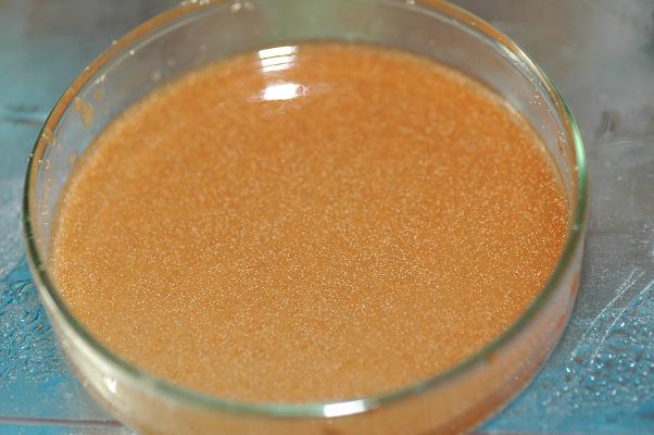 濾されたブラインシュリンプをシャーレに盛り付けたら