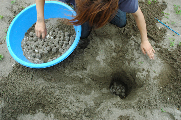 ウミガメの卵は、お母さんが産み落として12時間後から発生が始まります。