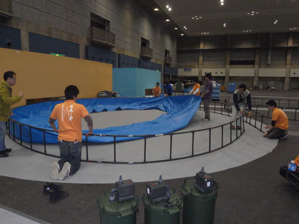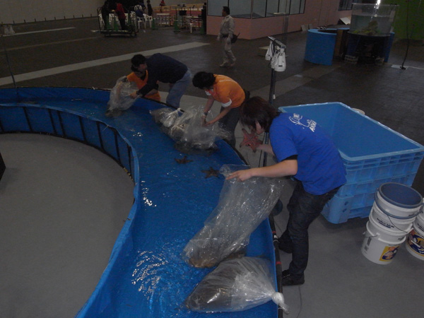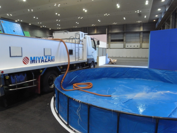 会場が巨大なだけに、持ってきたプールや水槽の数は尋常じゃ