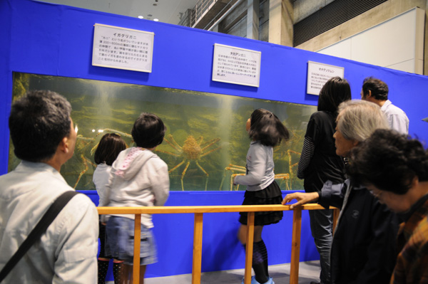 巨大水槽に、これでもかというほど巨大ガニがひしめいています!