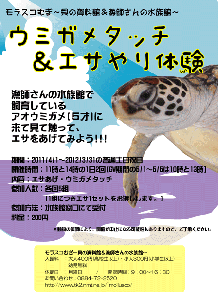 「GW中はウミガメタッチ&エサやり体験の時間がいつもと違うから注意だ!!!」